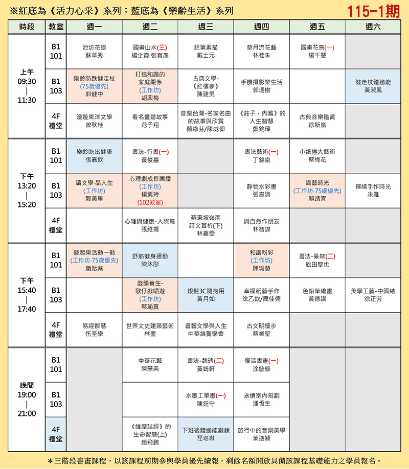 (四)報名資格:年滿15歲之社會大眾、前一期學員任一門課缺課未達4次者